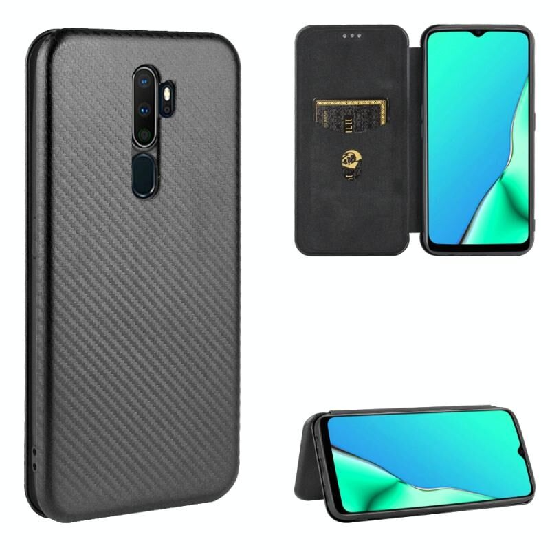 Για OPPO A9 (2020) / A11 / A11X / A5 (2020) Carbon Fiber Texture Horizontal Flip TPU + PC + PU Leather Case με υποδοχή κάρτας (Μαύρο)