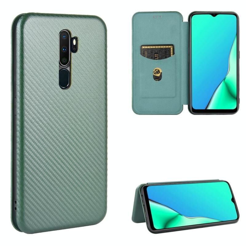 Για OPPO A9 (2020) / A11 / A11X / A5 (2020) Carbon Fiber Texture Horizontal Flip TPU + PC + PU Leather Case με υποδοχή κάρτας (πράσινο)