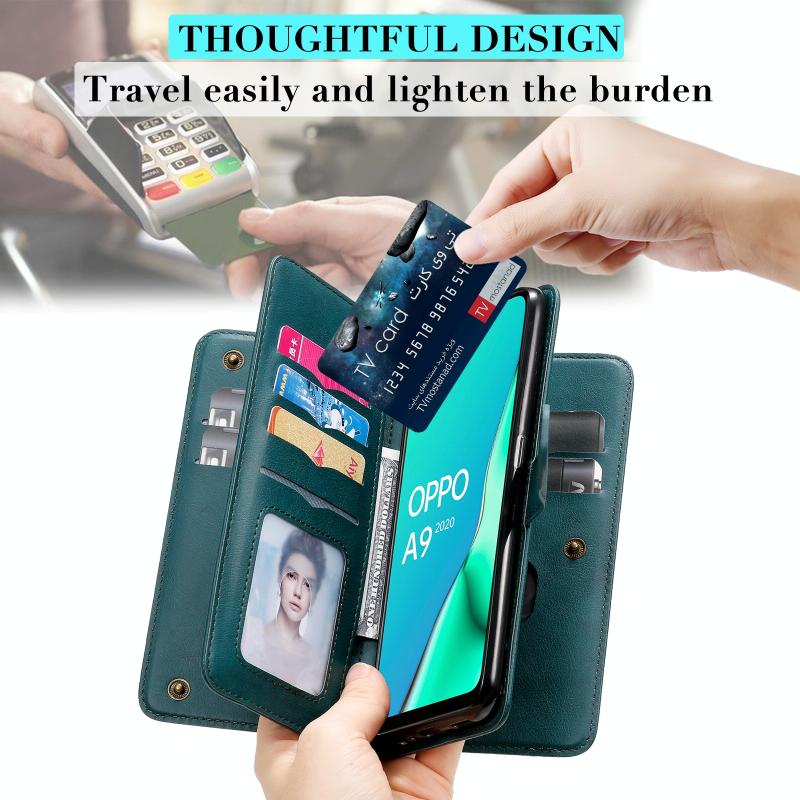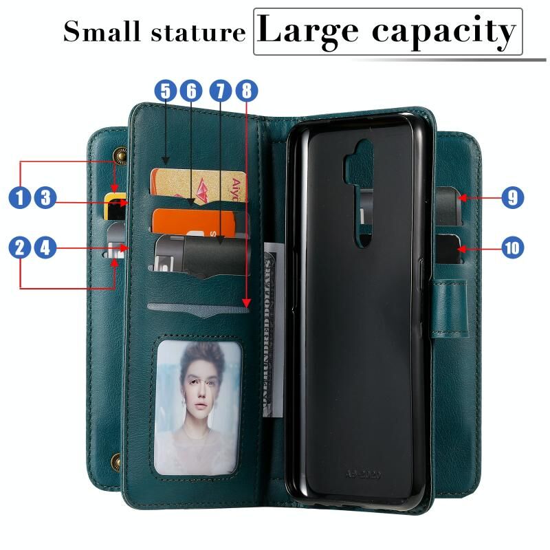For OPPO A9 (2020) / A11x / A5 (2020) Multifunctional Magnetic Copper Buckle Horizontal Flip Solid Color Leather Case with 10 Card Slots & Wallet & Holder & Photo Frame(Rose Gold)