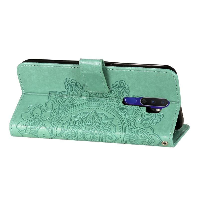 Για OPPO A9 2020 / A5 2020 Θήκη οριζόντιας αναδίπλωσης από δερματίνη PU με ανάγλυφο σχέδιο 7 πέταλων, με βάση στήριξης & υποδοχές καρτών & πορτοφόλι & κορνίζα φωτογραφιών (Χρυσό Ρόδι)