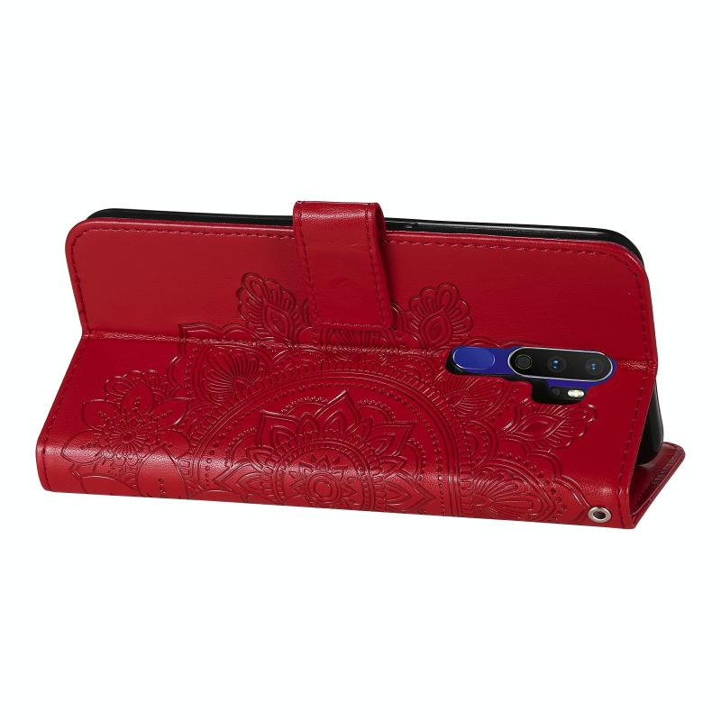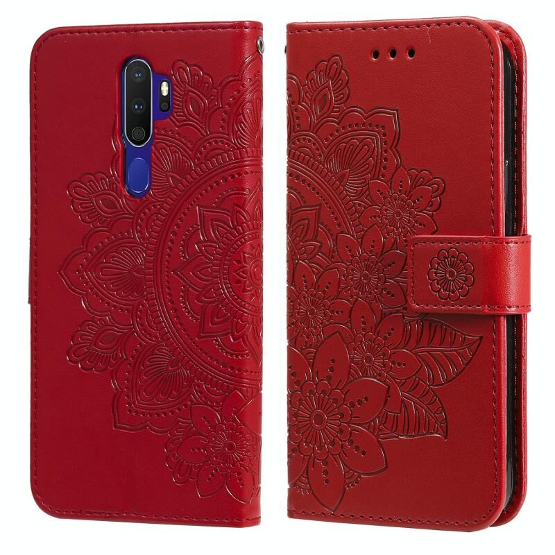 Για OPPO A9 2020 / A5 2020 Θήκη οριζόντιας αναδίπλωσης από δερματίνη PU με ανάγλυφο σχέδιο 7 πέταλων, με βάση στήριξης & υποδοχές καρτών & πορτοφόλι & κορνίζα φωτογραφιών (Χρυσό Ρόδι)