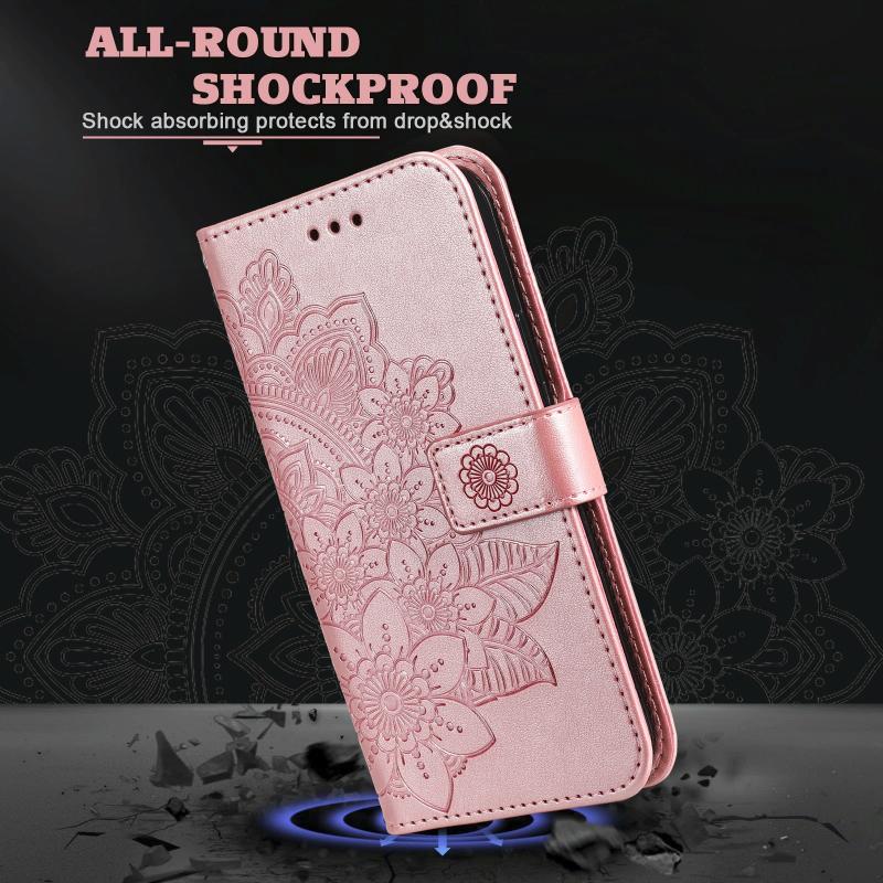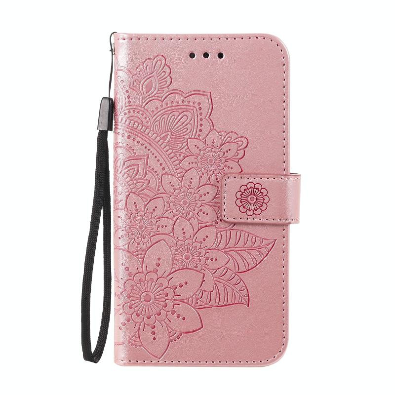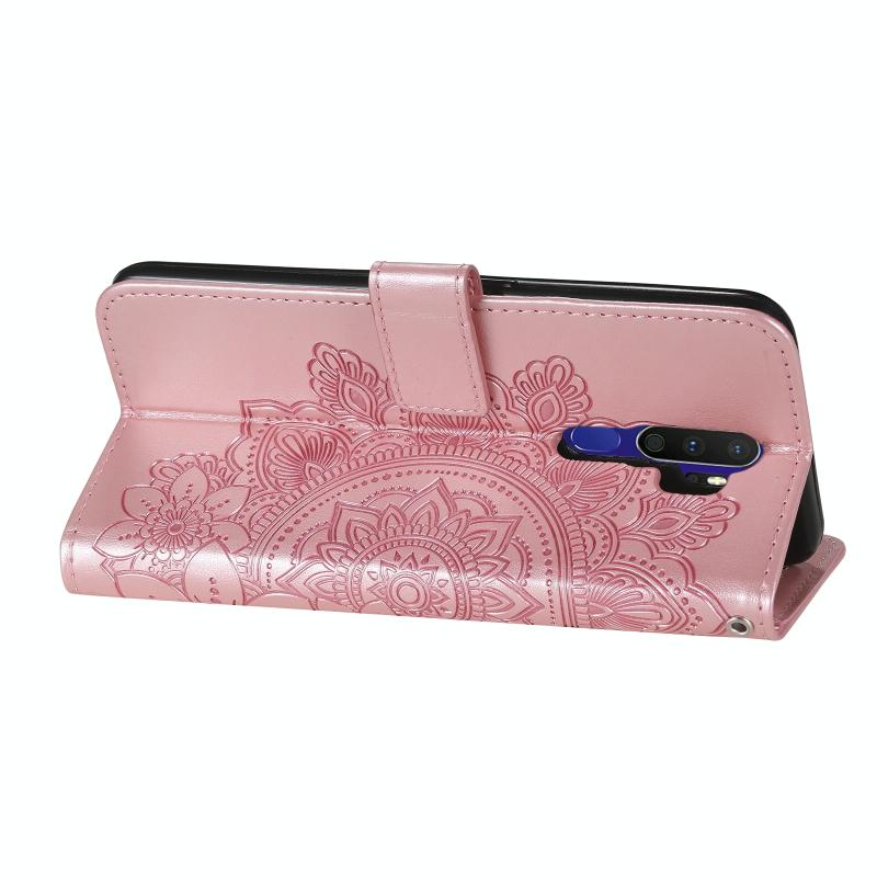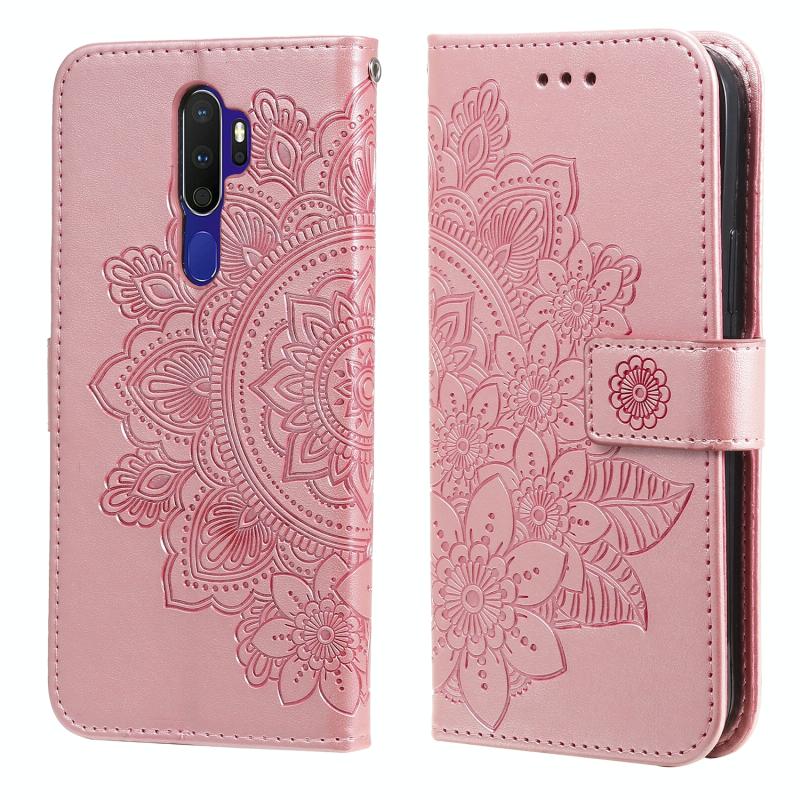For OPPO A9 2020 / A5 2020 7-petal Flowers Embossing Pattern Horizontal Flip PU Leather Case with Holder & Card Slots & Wallet & Photo Frame(Rose Gold)