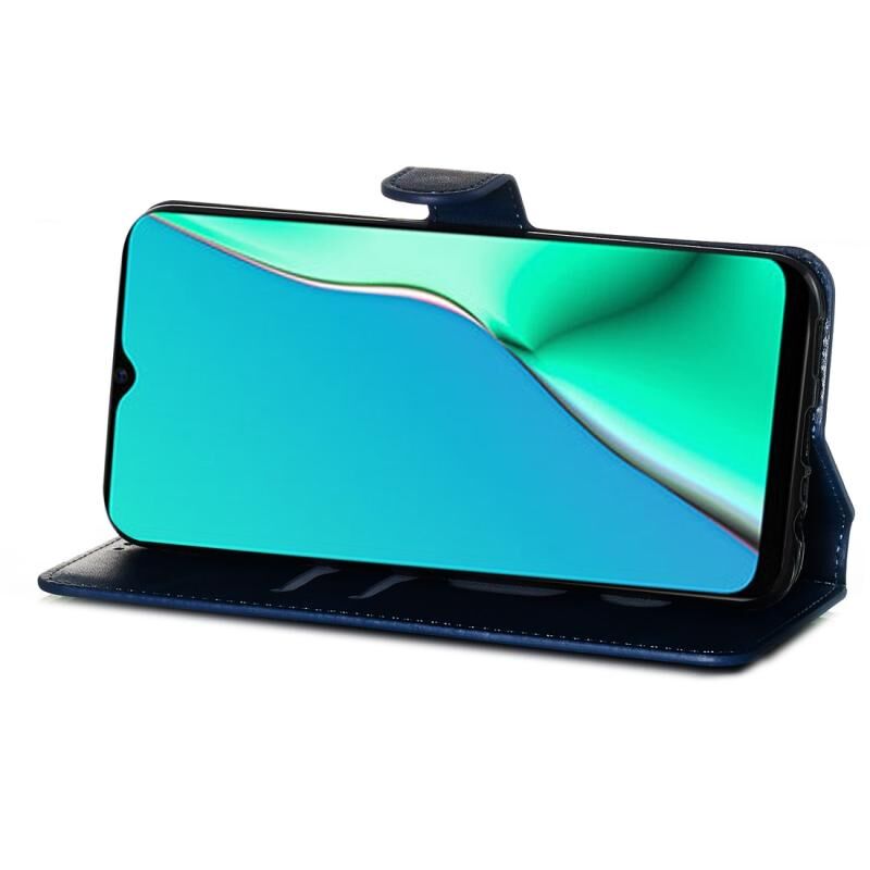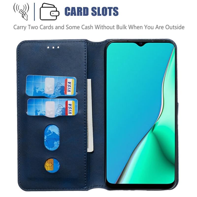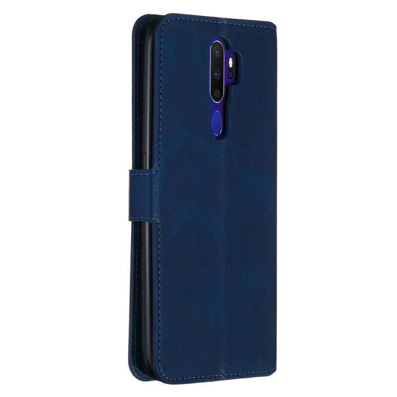 Για το OPPO A9 (2020) / A5 (2020) / A11x Κλασική θήκη από δέρμα μοσχαριού με οριζόντια αναδιπλούμενη PU θήκη, με υποδοχές για κάρτες και πορτοφόλι (Μπλε)