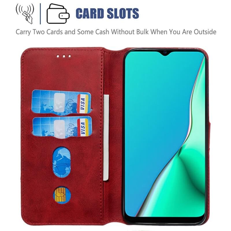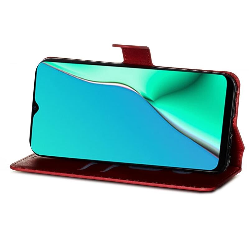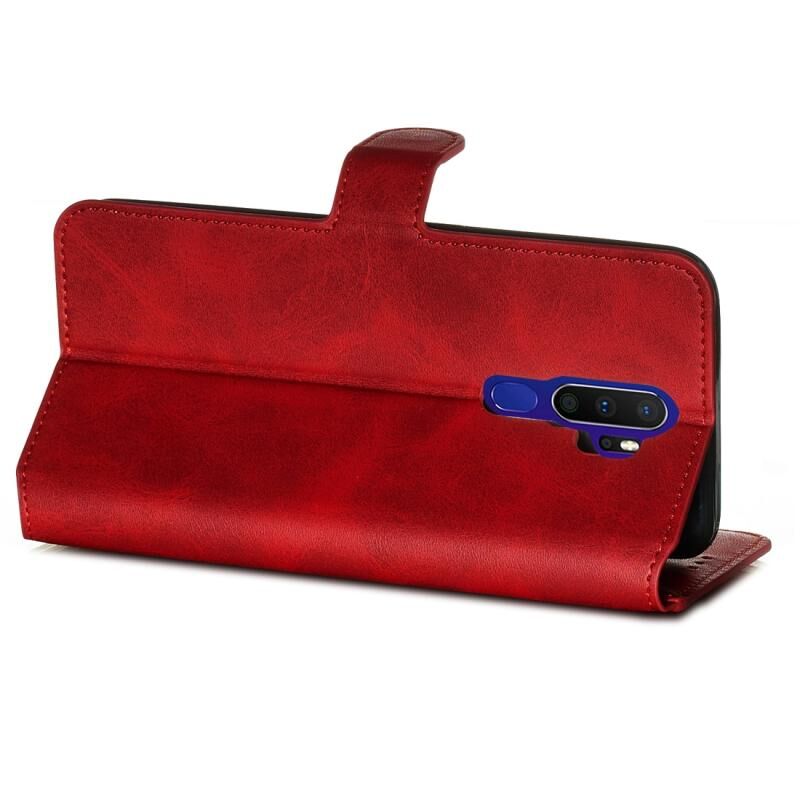 Για OPPO A9 (2020) / A5 (2020) / A11x Κλασική θήκη από δέρμα μοσχαριού με υφή οριζόντια αναδιπλούμενη PU, με θήκη για κάρτες, υποδοχές και πορτοφόλι (Κόκκινο)