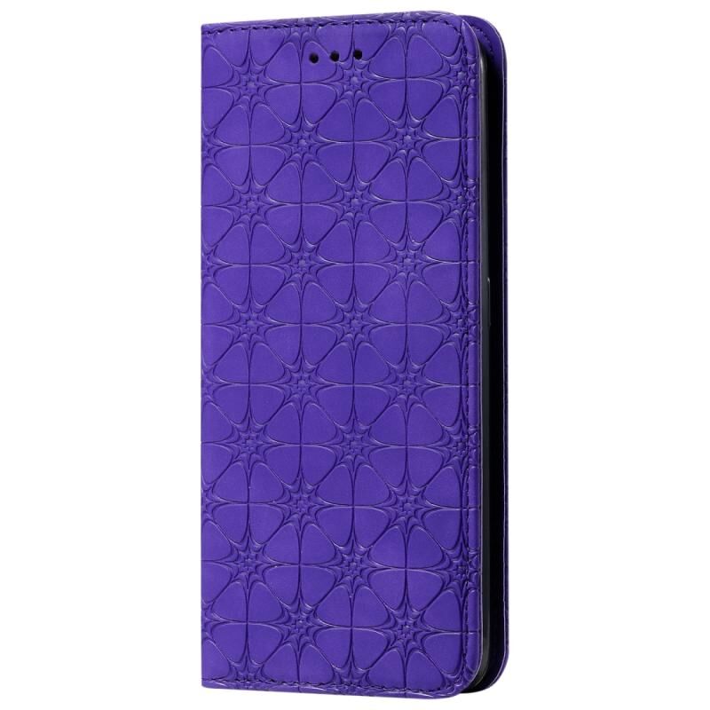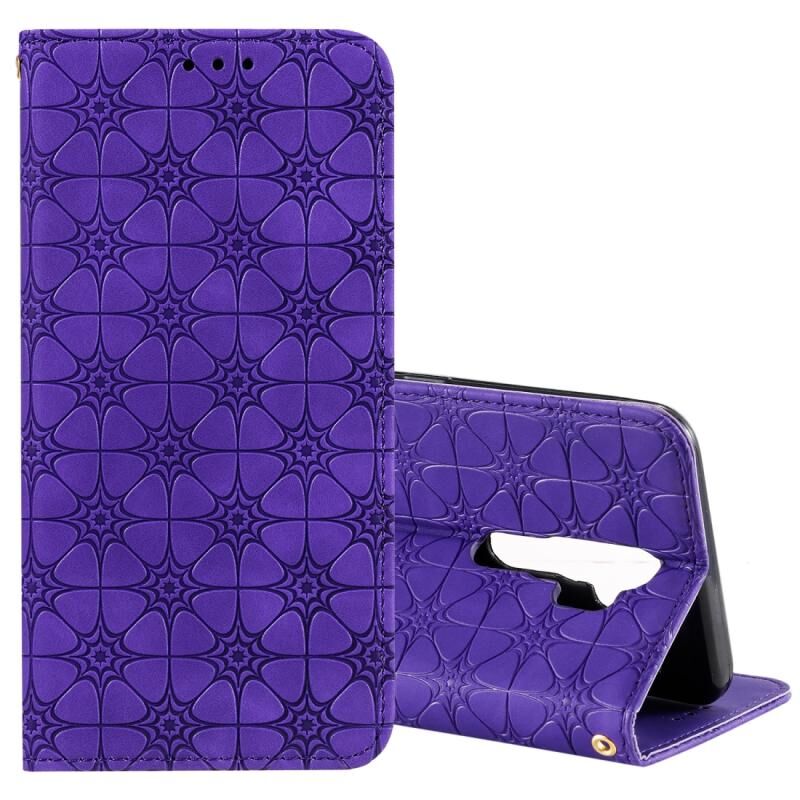 Θήκη δέρματος με μαγνητικό κλείσιμο, οριζόντια, με ανάγλυφο σχέδιο τυχερών λουλουδιών και θήκη/υποδοχές για κάρτες, για OPPO A9 (2020) / A5 (2020) / A11X (Μωβ)