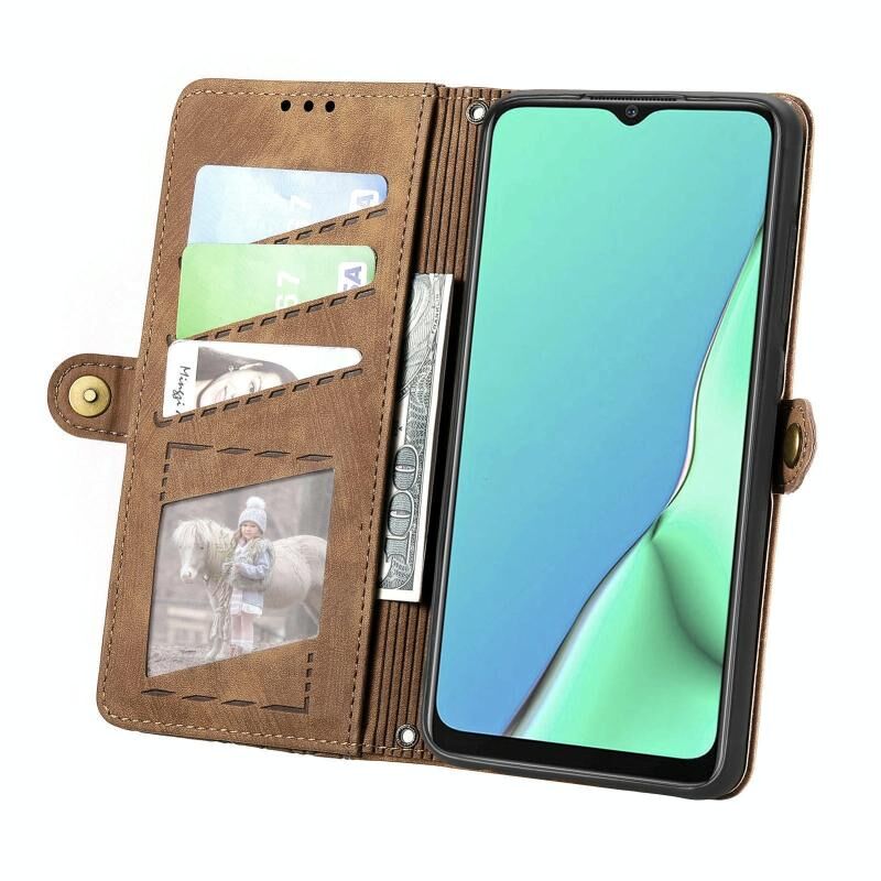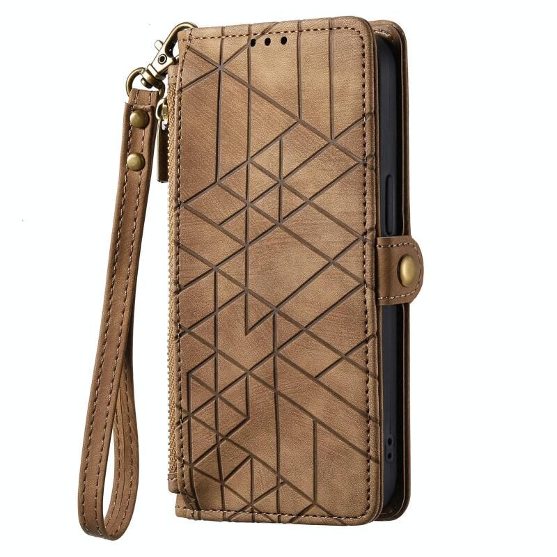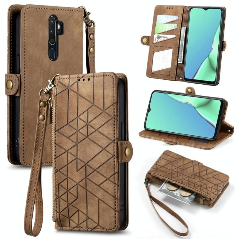 Για OPPO A9 2020 / A5 2020 γεωμετρική φερμουάρ πορτοφόλι πλευρά πόρπη δερμάτινη θήκη τηλεφώνου (Καφέ)