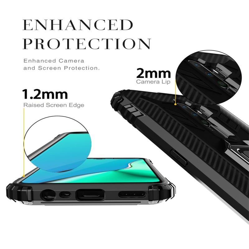Για OPPO A9 (2020) Carbon Fiber προστατευτική θήκη με 360 μοίρες περιστρεφόμενο δακτύλιο κάτοχος (μαύρο)
