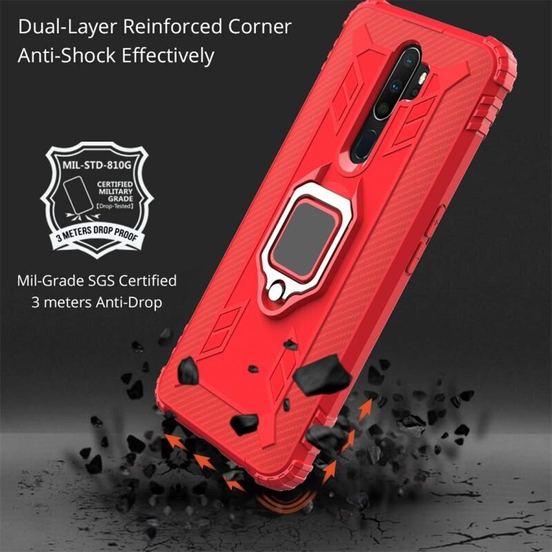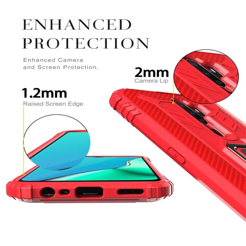 Για OPPO A9 (2020) Carbon Fiber προστατευτική θήκη με 360 μοίρες περιστρεφόμενο δακτύλιο κάτοχος (κόκκινο)