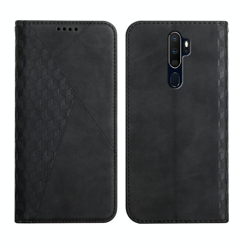 Για OPPO A9 2020 Diamond Pattern Splicing Skin Feel Μαγνητική οριζόντια Flip δερμάτινη θήκη με υποδοχές καρτών & κάτοχος & πορτοφόλι (μαύρο)