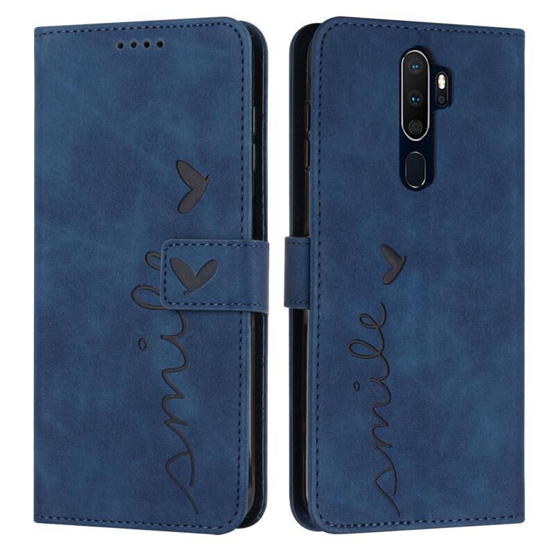 Για Oppo A9 2020 δέρμα αίσθηση καρδιά μοτίβο δερμάτινη θήκη τηλεφώνου (μπλε)