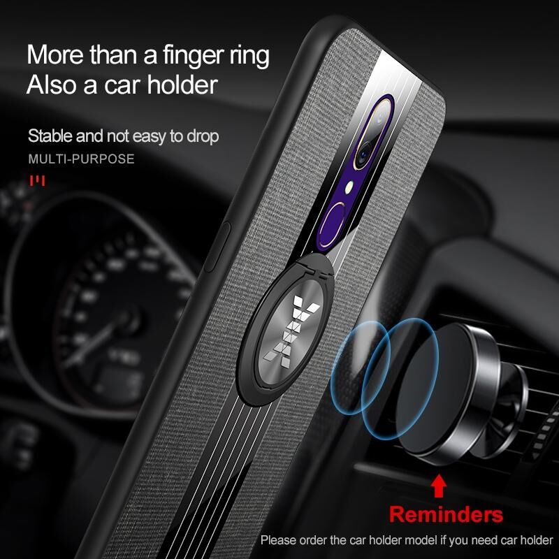 Για OPPO A9 XINLI ραφή ύφασμα Textue Shockproof TPU προστατευτική θήκη με δαχτυλίδι κάτοχος (καφέ) (Καφέ)