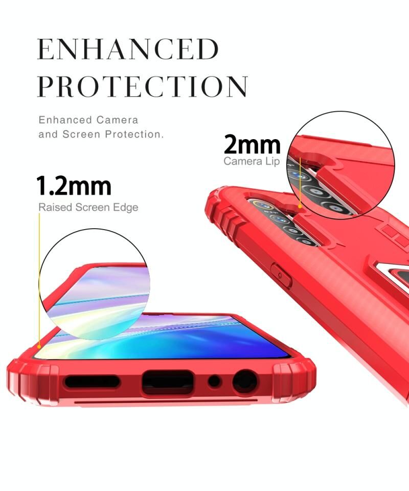 Για OPPO A91 & F15 & Reno3 Carbon Fiber Προστατευτική θήκη με 360 μοίρες περιστρεφόμενο δαχτυλίδι κάτοχος (Κόκκινο)