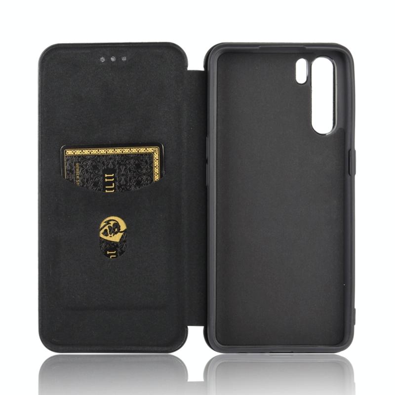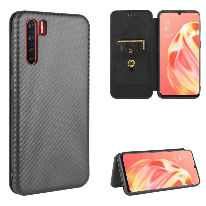 For OPPO A91 / F15 Reno3(Southeast Asia Version) Carbon Fiber Texture Horizontal Flip TPU + PC + PU Leather Case with Card Slot(Black)