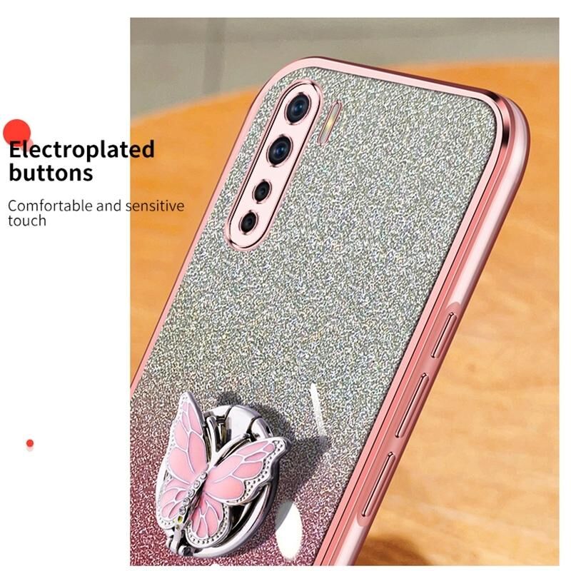Για OPPO A91 Επιμεταλλωμένο διαβάθμιση Glitter πεταλούδα κάτοχος TPU τηλέφωνο υπόθεση (Μαύρο)