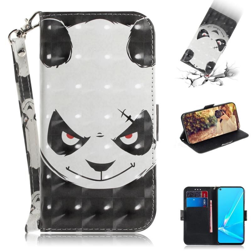 Θήκη δέρματος οριζόντιας αναδίπλωσης 3D με σχέδιο και χρώματα για OPPO A92, με βάση στήριξης, θήκες καρτών, πορτοφόλι και κορδόνι (Οργισμένη Αρκούδα)