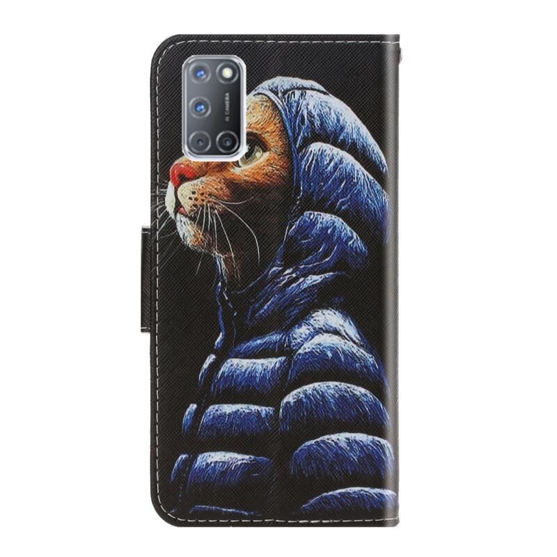 Θήκη για OPPO A92 / A72 / A52 3D πολύχρωμη ζωγραφική οριζόντια αναδιπλούμενη από δερματίνη PU με βάση & υποδοχές καρτών & πορτοφόλι (Γάτα με πουπουλένιο μπουφάν)
