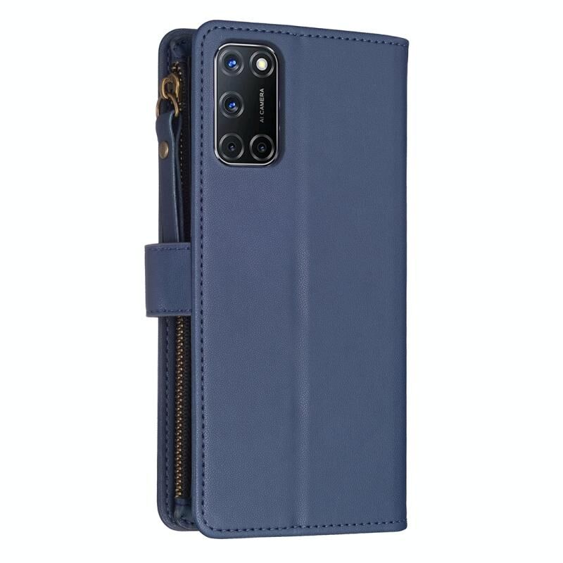 Για OPPO A92 / A72 / A52 Θήκη Τηλεφώνου από Δέρμα με Γυριστό Σχεδιασμό και 9 Θήκες Καρτών με Φερμουάρ (Μπλε)