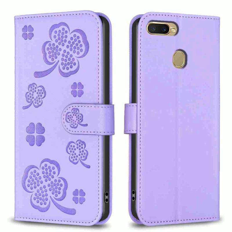 For OPPO A92 / A72 / A52 Four-leaf Embossed Leather Phone Case(Purple)