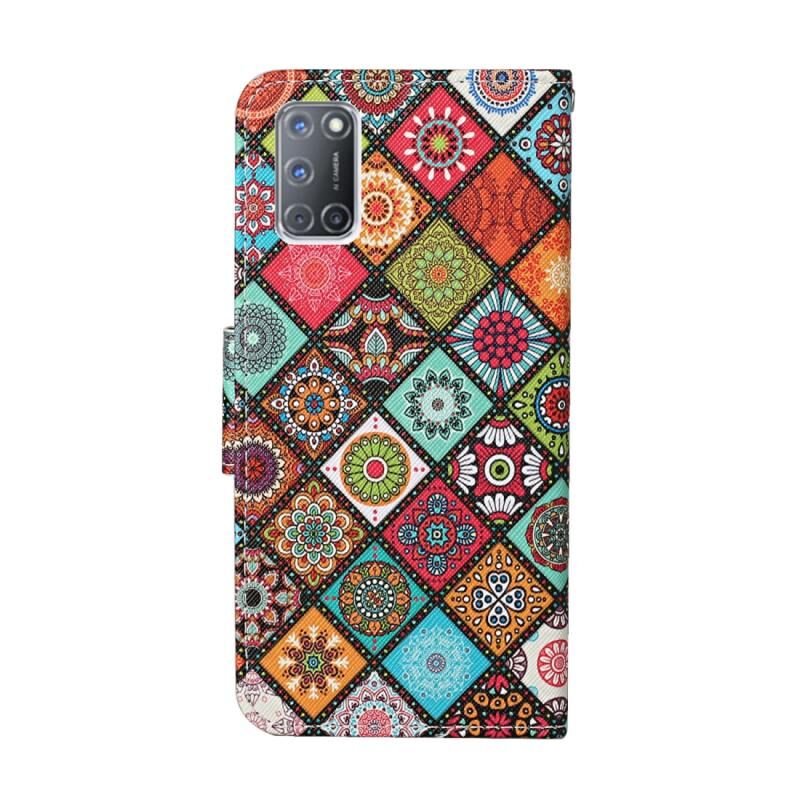 Θήκη δέρματος οριζόντιας αναδίπλωσης με σχέδιο πολύχρωμης ζωγραφικής για OPPO A92 με βάση & υποδοχές καρτών & πορτοφόλι (Κόκκινο)
