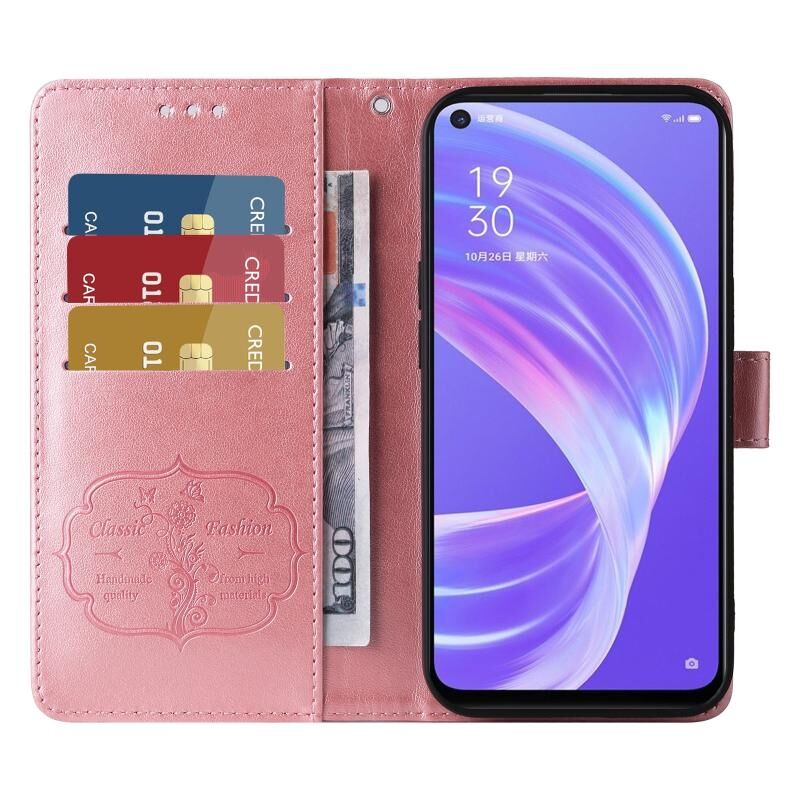 Θήκη τηλεφώνου από δέρμα με ανάγλυφα σχέδια πεταλούδας και λουλουδιών για OPPO A92s / A53 5G / A72 5G / A73 5G (Μωβ)