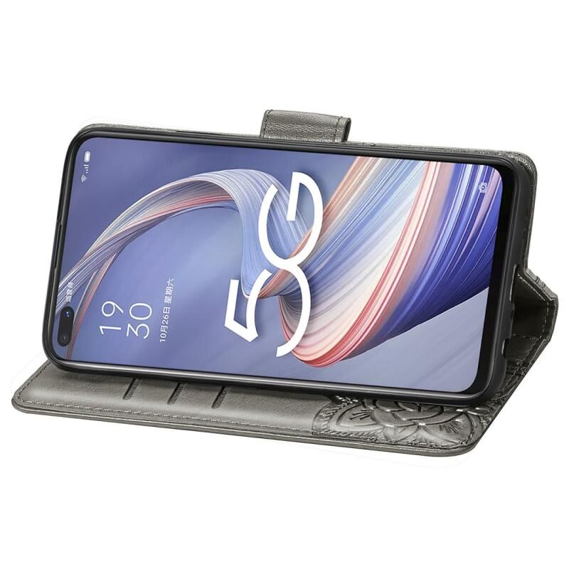 Θήκη δέρματος οριζόντιας αναδίπλωσης για OPPO A92S με ανάγλυφο σχέδιο πεταλούδας και λουλουδιών, με βάση στήριξης, θήκες καρτών, πορτοφόλι και κορδόνι (Μαύρο)