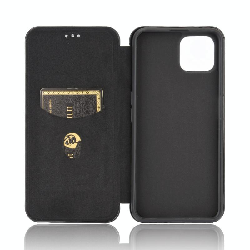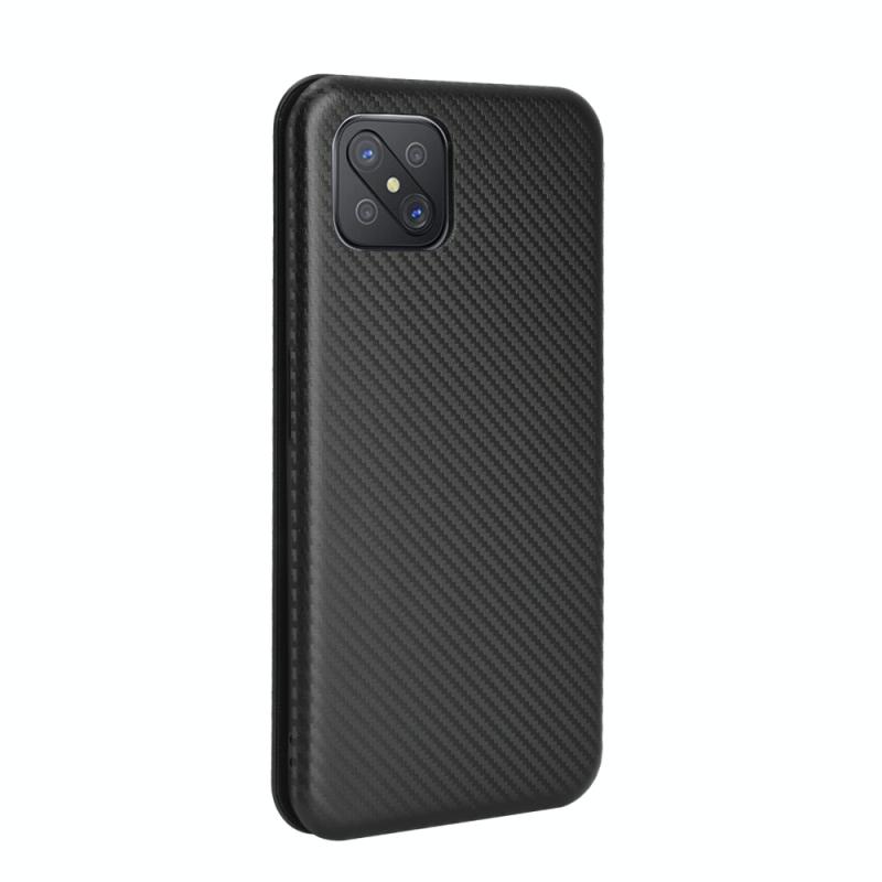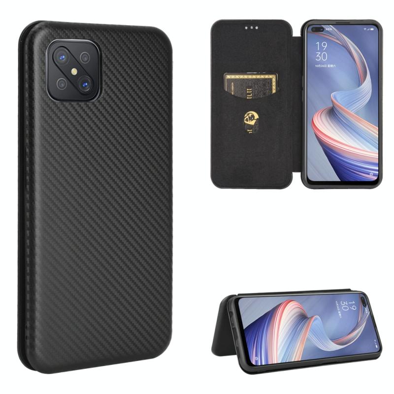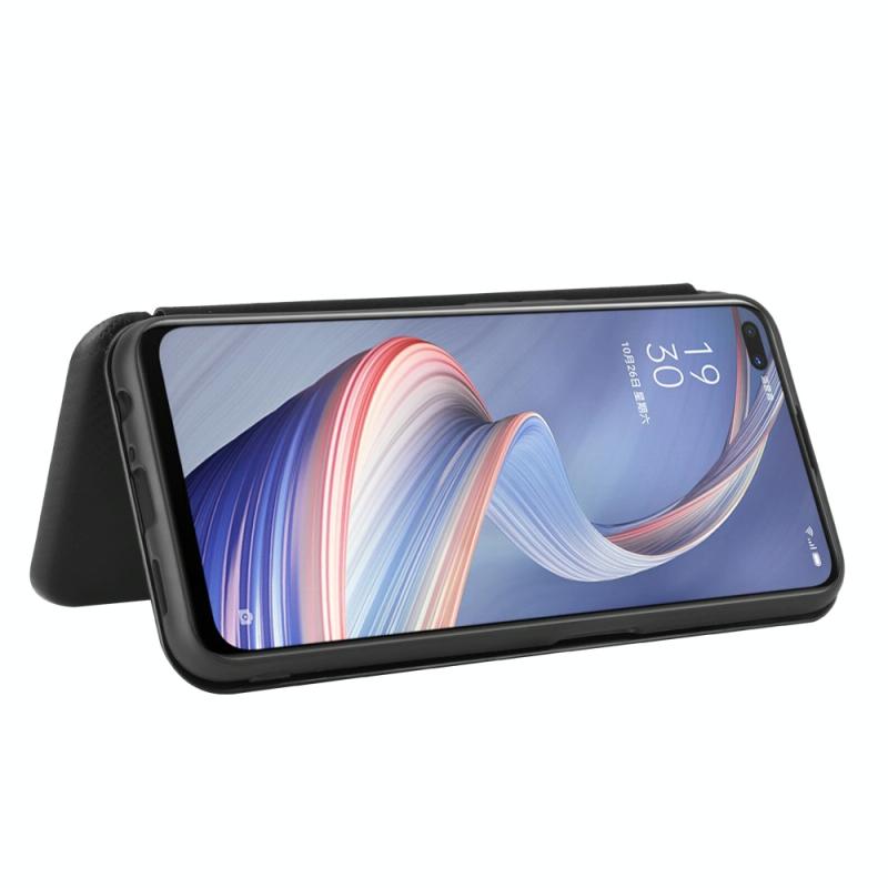 For OPPO A92s Carbon Fiber Texture Horizontal Flip TPU + PC + PU Leather Case with Card Slot(Black)