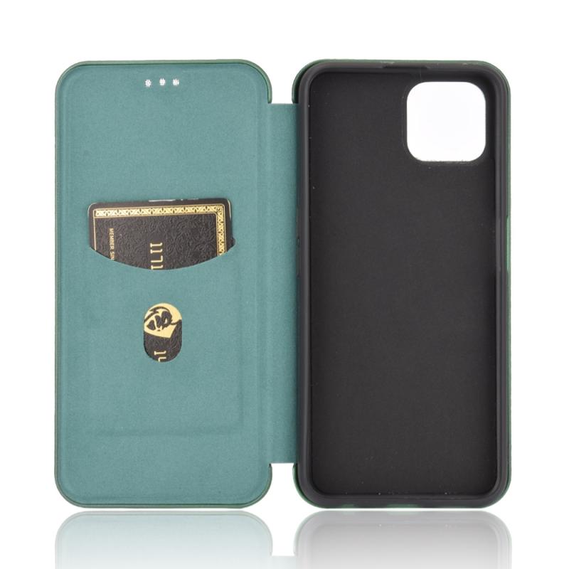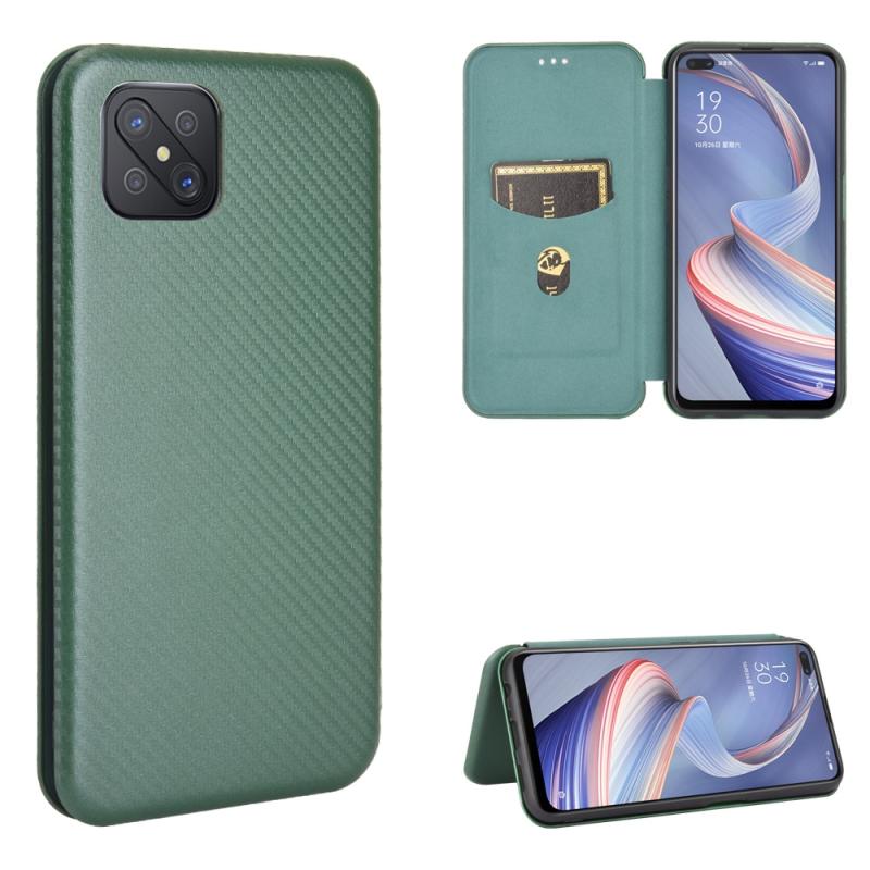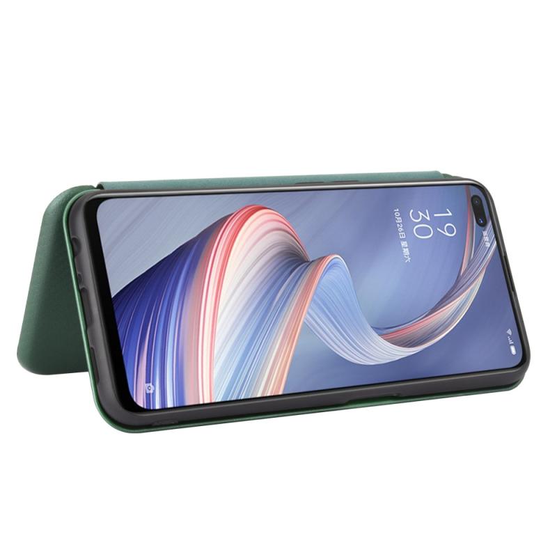 For OPPO A92s Carbon Fiber Texture Horizontal Flip TPU + PC + PU Leather Case with Card Slot(Green)