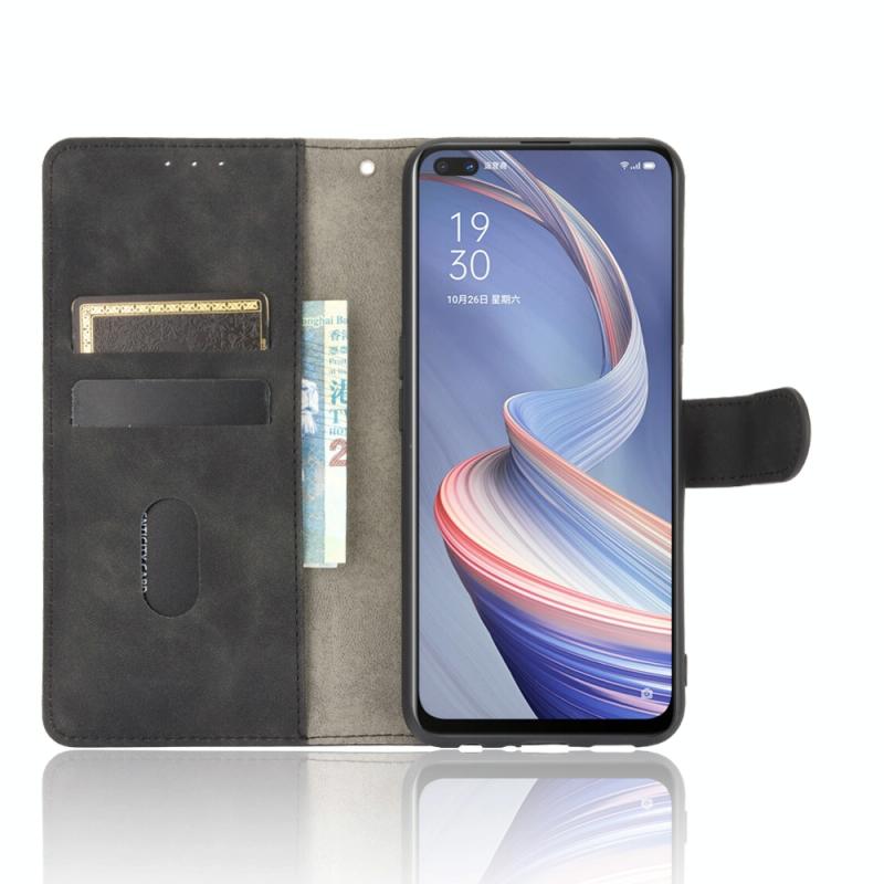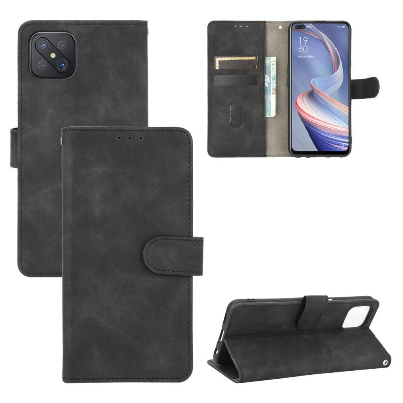 For OPPO A92s Solid Color Skin Feel Magnetic Buckle Horizontal Flip Calf Texture PU Leather Case with Holder & Card Slots & Wallet(Black)
