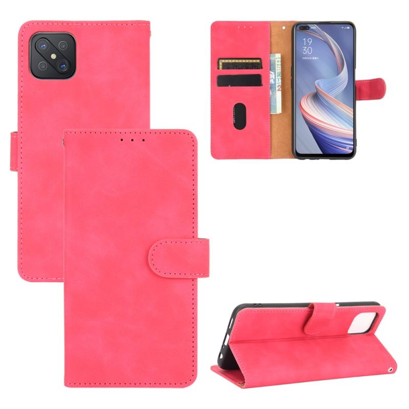For OPPO A92s Solid Color Skin Feel Magnetic Buckle Horizontal Flip Calf Texture PU Leather Case with Holder & Card Slots & Wallet(Rose Red)