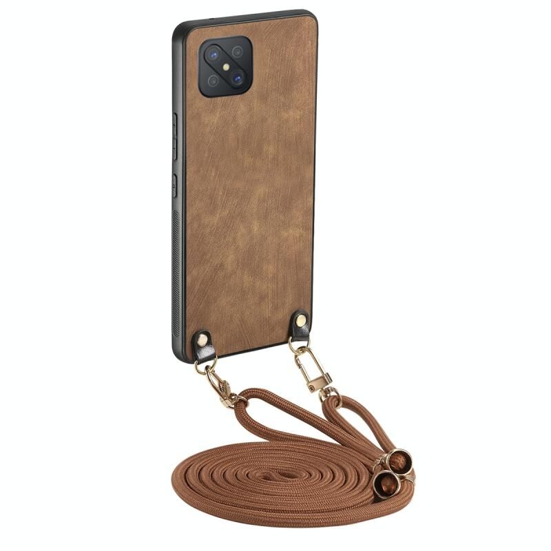 Θήκη κινητού τηλεφώνου OPPO A92S από δέρμα vintage και PC με λουρί χιαστί (Καφέ)