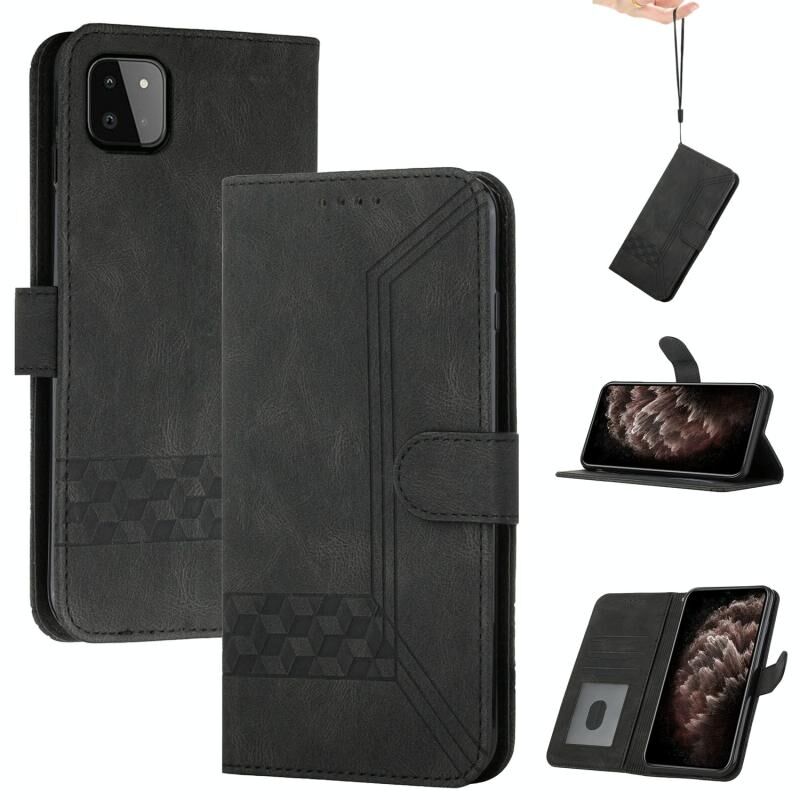 For OPPO A93 2020 Cubic Skin Feel Flip Leather Phone Case(Black)