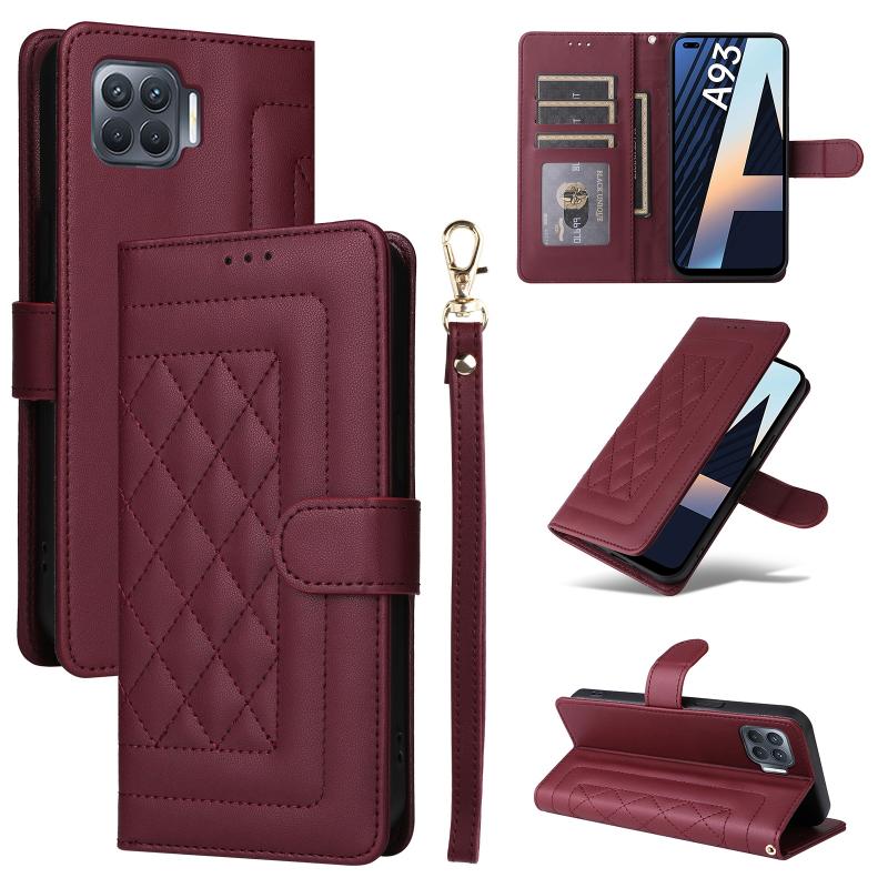 For OPPO A93 4G / F17 Pro Diamond Lattice Leather Flip Phone Case(Wine Red)