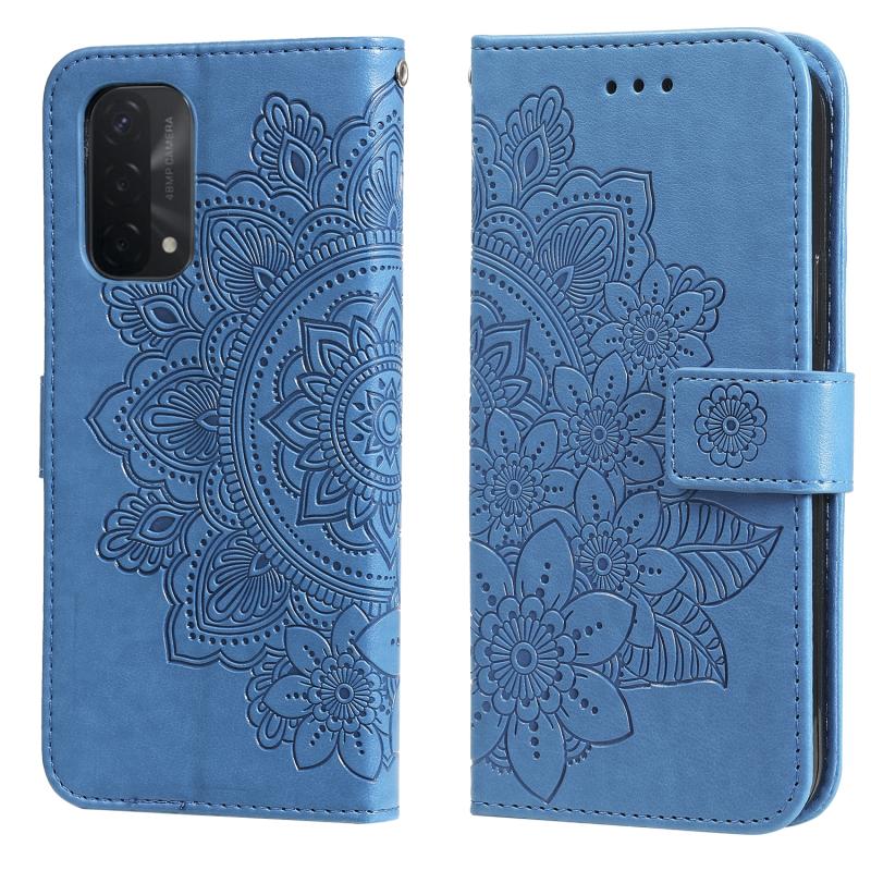 Για OPPO A93 5G / A74 5G / A54 5G Θήκη οριζόντιας αναδίπλωσης από δερματίνη PU με ανάγλυφο σχέδιο 7 πέταλων, με βάση στήριξης & υποδοχές καρτών & πορτοφόλι & κορνίζα φωτογραφιών (Χρυσό ροζ)