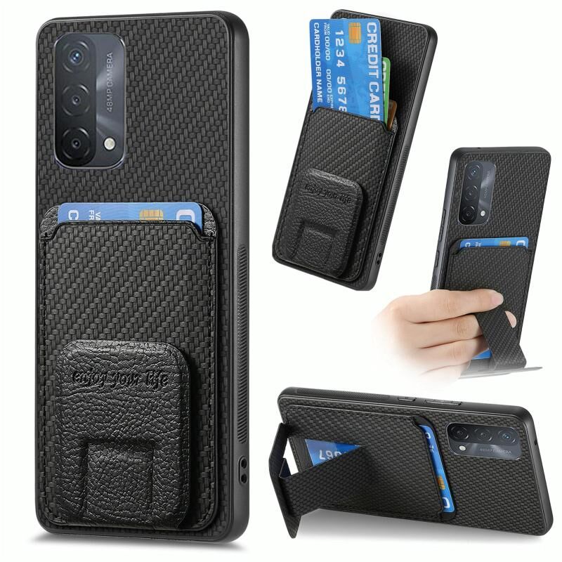 Θήκη για OPPO A93 5G/A74 5G/A54 5G Carbon Fiber με Κάρτες & Στήριξη (Μαύρο)