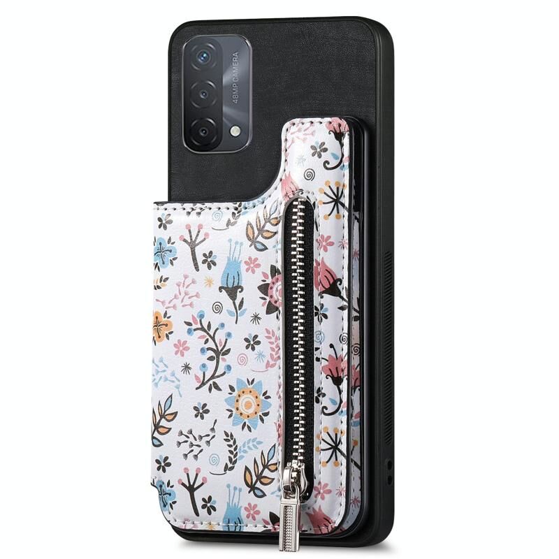Για OPPO A93 5G / A74 5G / A54 5G Ρετρό ζωγραφισμένο φερμουάρ πορτοφόλι πίσω τηλέφωνο υπόθεση (μαύρο)
