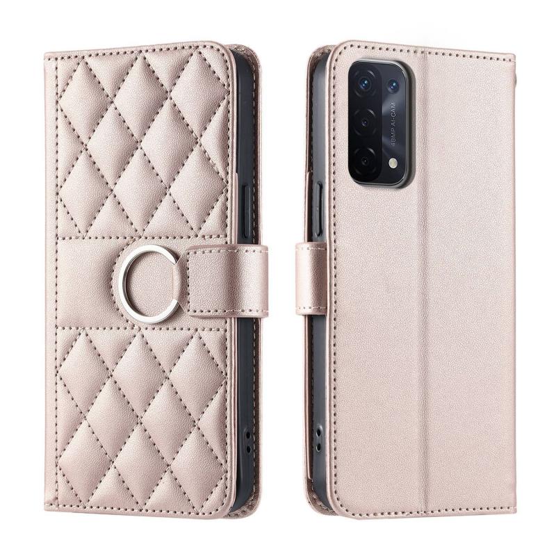 For OPPO A93 5G / A74 5G / A54 5G Ring Buckle Rhombic Leather Phone Case(Rose Gold)