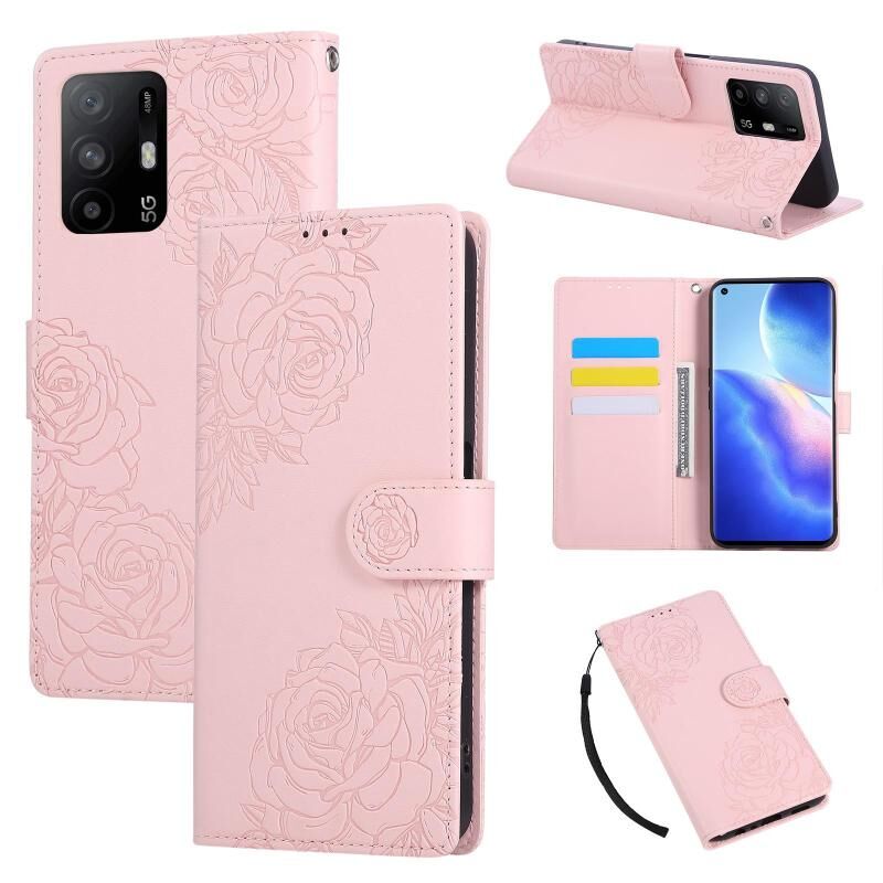 For OPPO A93 5G / A74 5G / A54 5G Rose Flower Embossed 3-Card Slots Leather Phone Case(Pink)