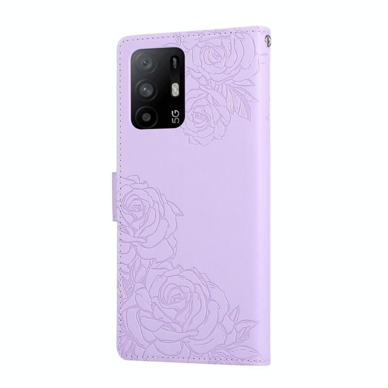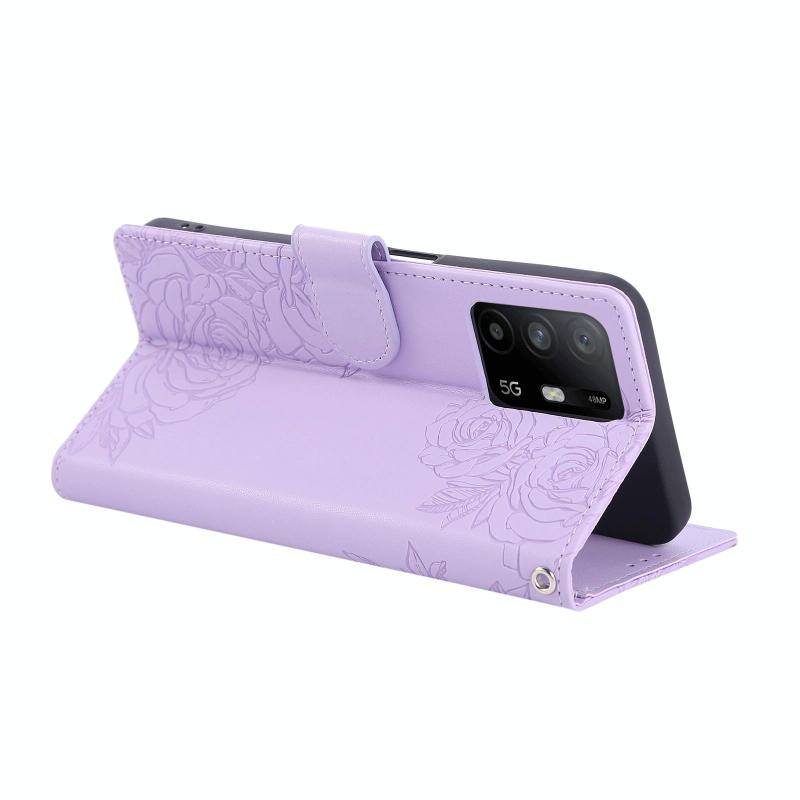 For OPPO A93 5G / A74 5G / A54 5G Rose Flower Embossed 3-Card Slots Leather Phone Case(Purple)