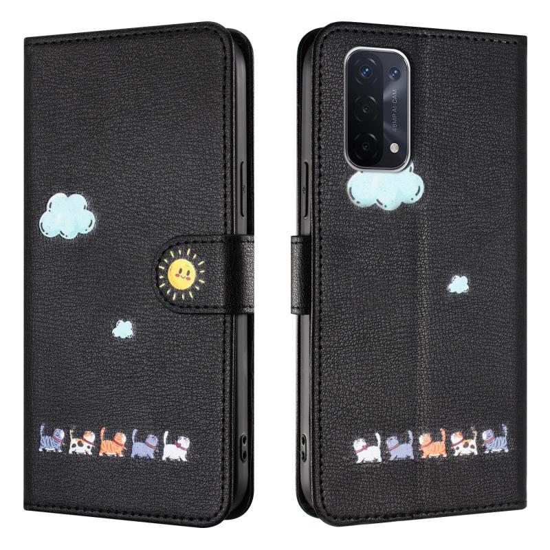 For OPPO A93 5G / A74 5G Cartoon Cats Leather Phone Case(Black)