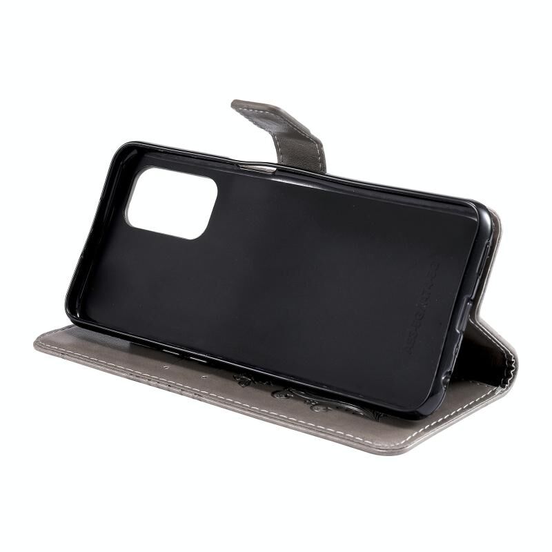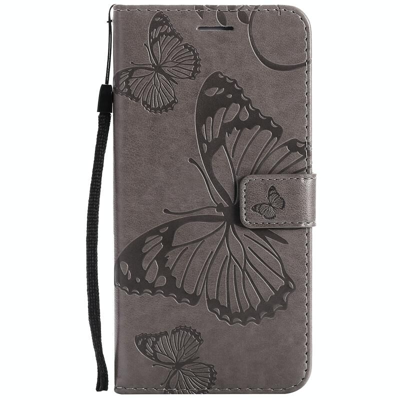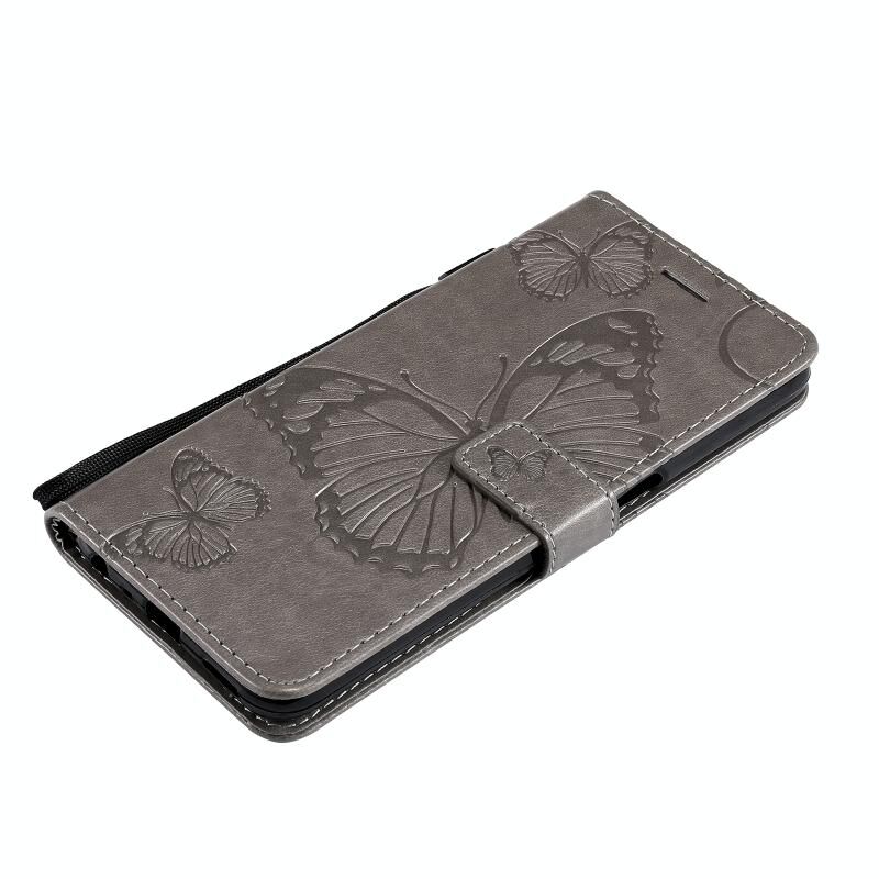Για OPPO A93 5G / A74 5G Πιεσμένη εκτύπωση πεταλούδα μοτίβο οριζόντια Flip PU δέρμα υπόθεση με κάτοχο & υποδοχές καρτών & πορτοφόλι & Lanyard (Γκρι)
