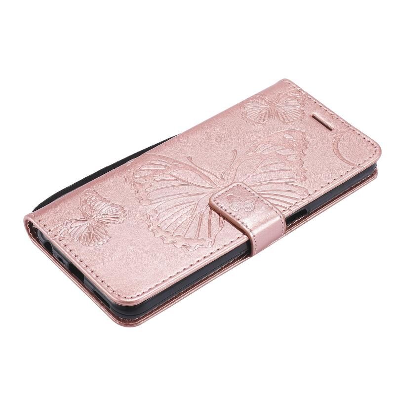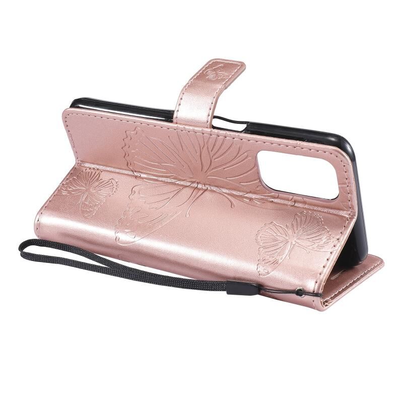 Για OPPO A93 5G / A74 5G Πιεσμένη εκτύπωση πεταλούδα μοτίβο οριζόντια Flip PU δέρμα υπόθεση με κάτοχο & υποδοχές καρτών & πορτοφόλι & Lanyard (Ροζ χρυσός)