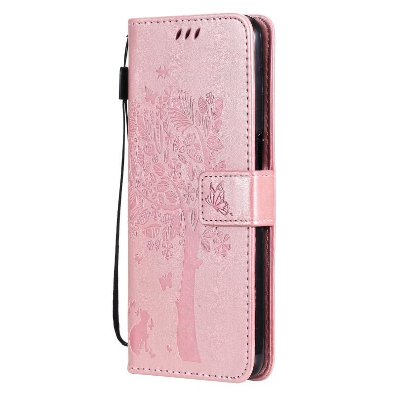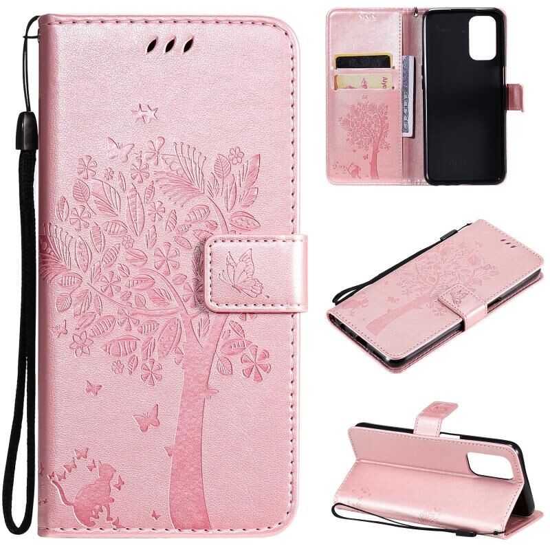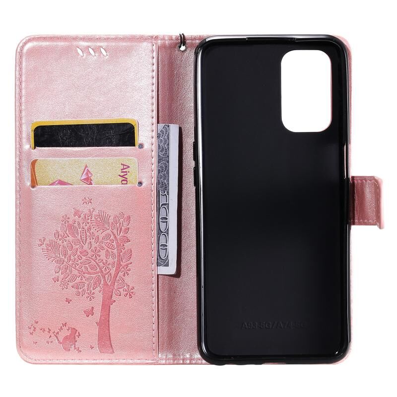 Θήκη για OPPO A93 5G / A74 5G με σχέδιο Δέντρου & Γάτας, εκτύπωση με πίεση, οριζόντια αναδιπλούμενη από δερματίνη PU με βάση στήριξης & θήκες καρτών & πορτοφόλι & κορδόνι (Πράσινο)