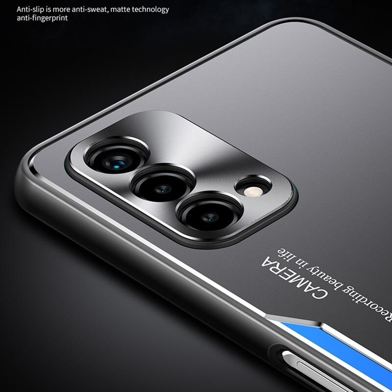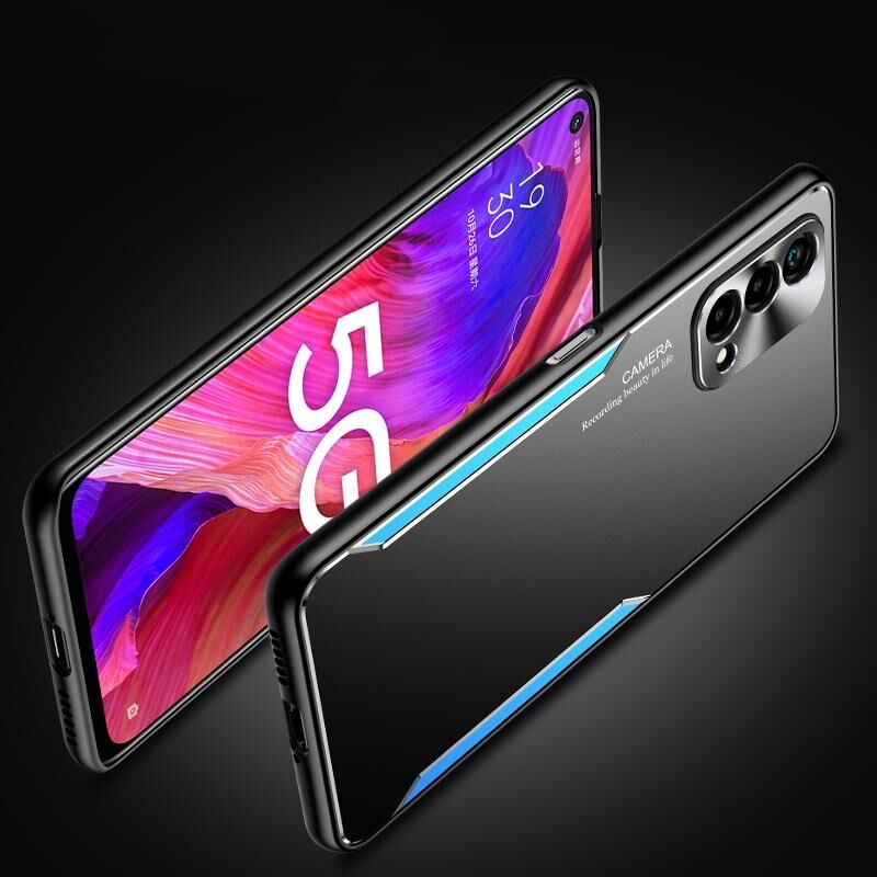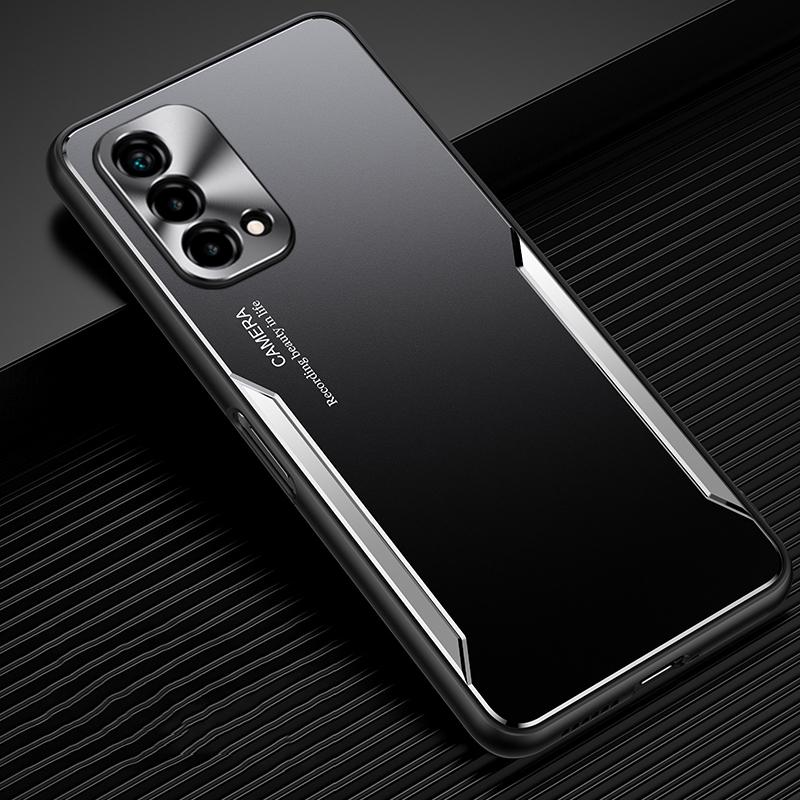 For OPPO A93 5G Blade Series TPU Frame + Titanium Alloy Sand Blasting Technology Backplane + Color Aluminum Alloy Decorative Edge Mobile Phone Protective Shell(Black + Silver)