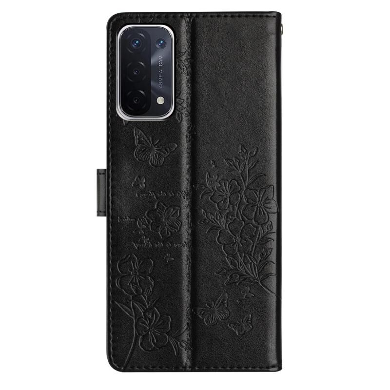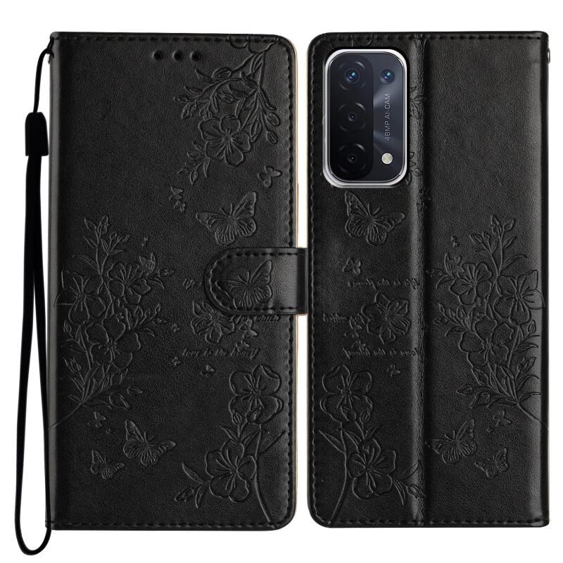 Θήκη τηλεφώνου από δέρμα με πεταλούδες και λουλούδια για OPPO A93 5G (Χρυσό)