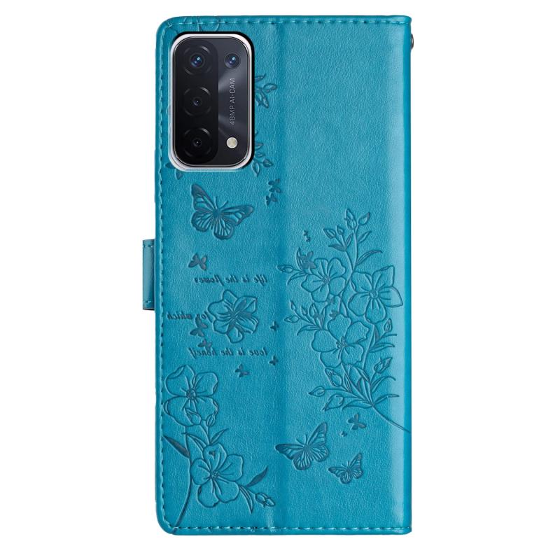 For OPPO A93 5G Butterflies and Flowers Leather Phone Case(Blue)