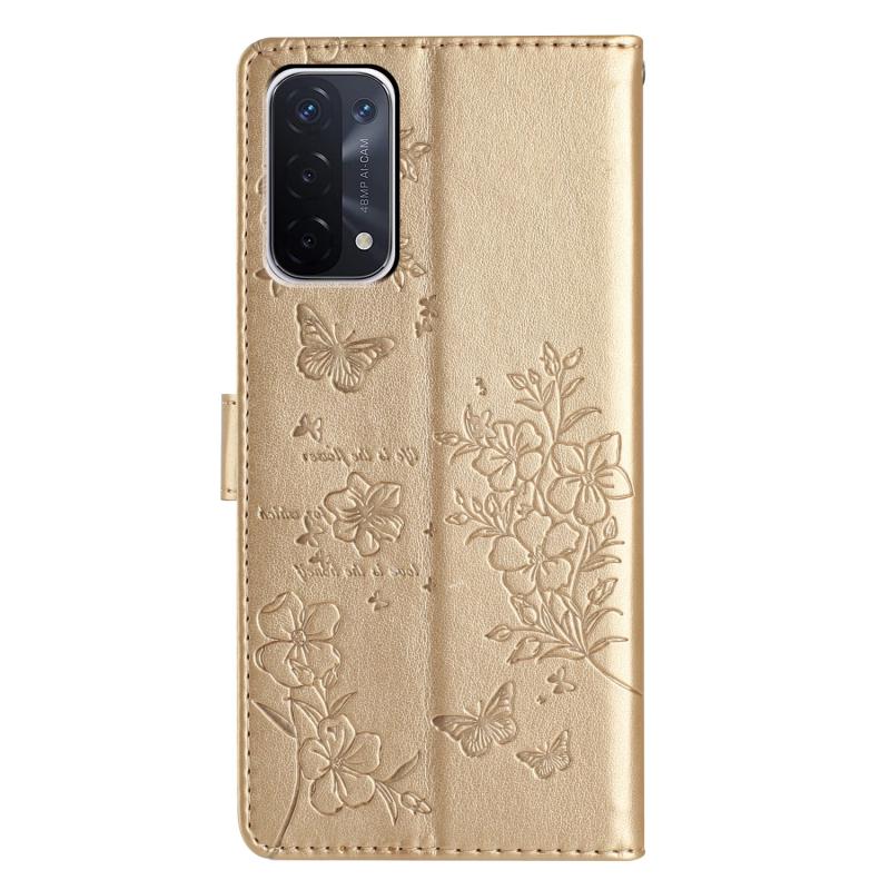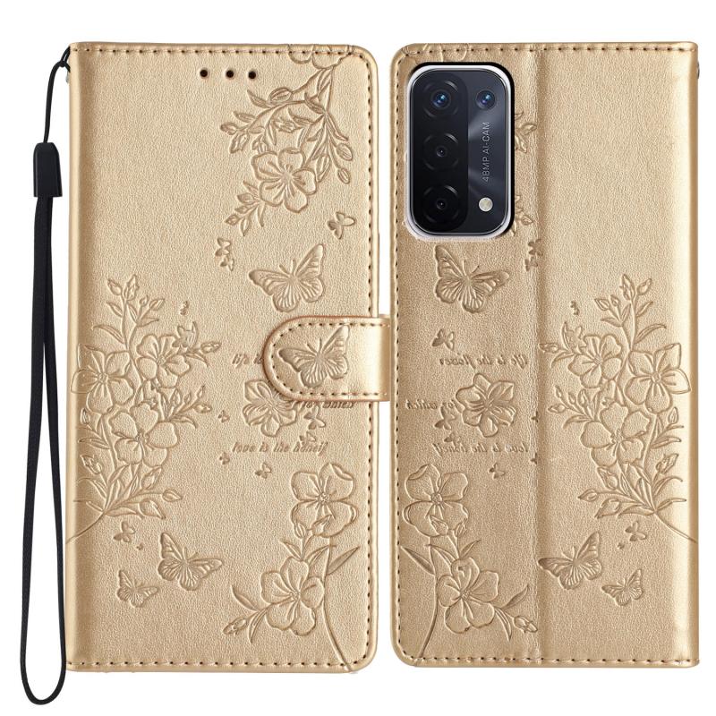 For OPPO A93 5G Butterflies and Flowers Leather Phone Case(Gold)
