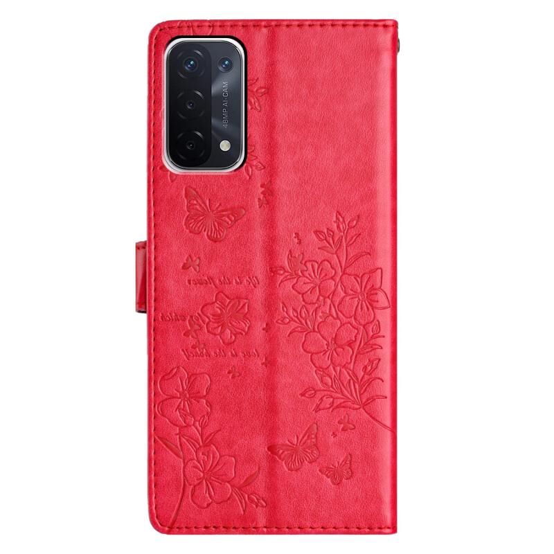 Θήκη τηλεφώνου από δέρμα με πεταλούδες και λουλούδια για OPPO A93 5G (Χρυσό)