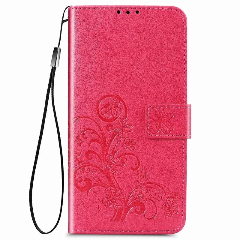 Για OPPO A93 5G Τέσσερα φύλλα κούμπωμα ανάγλυφο αγκράφα κινητό τηλέφωνο προστασία δερμάτινη θήκη με κορδόνι & υποδοχή για κάρτες & πορτοφόλι & βραχίονα λειτουργία (Ροζέ κόκκινο)