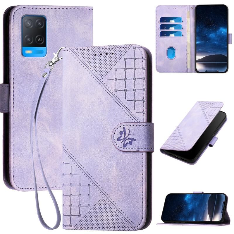 Θήκη τηλεφώνου από δέρμα με ανάγλυφο σχέδιο πλέγματος και πεταλούδας για OPPO A93 5G με κορδόνι (Σκούρο Μπλε)