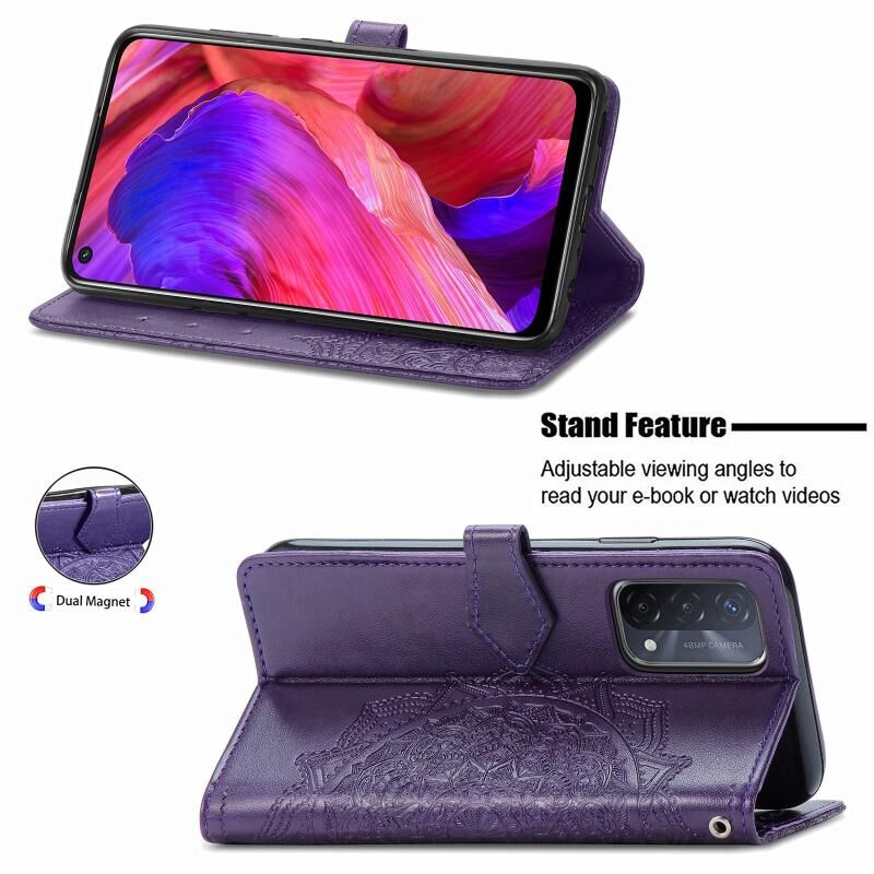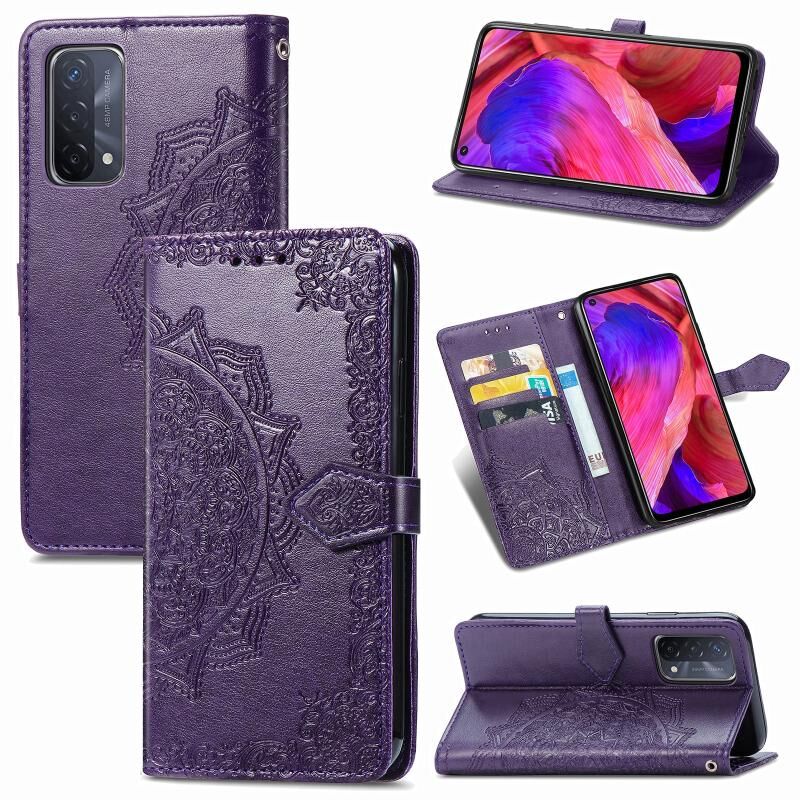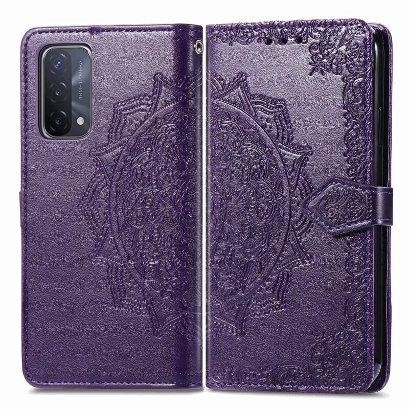 Για OPPO A93 5G Mandala λουλούδι ανάγλυφο οριζόντια Flip δερμάτινη θήκη με βραχίονα / υποδοχή κάρτας / πορτοφόλι / κορδόνι (μωβ)